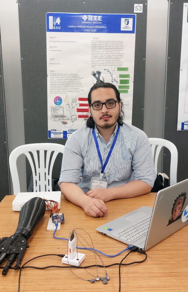 وقد تألق الطالب بسّام ضناوي من فرع الهندسة البيوطبية، بحصوله على المركز الثاني في فئة “برمجيات الهندسة البيوطبية”، عن مشروعه الذي يحمل عنوان: “أهمية معدل تغيّر ضربات القلب (HRV) في تشخيص احتشاء عضلة القلب باستخدام تقنيات التعلّم الآلي”، وذلك بإشراف الدكتور فراس زكريا، المحاضر في كلية الهندسة في جامعة المدينة.