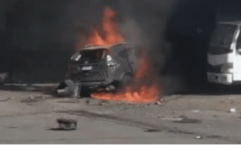 وأظهرت مشاهد أولية من موقع الاستهداف تصاعد أعمدة الدخان من وسط الطريق.