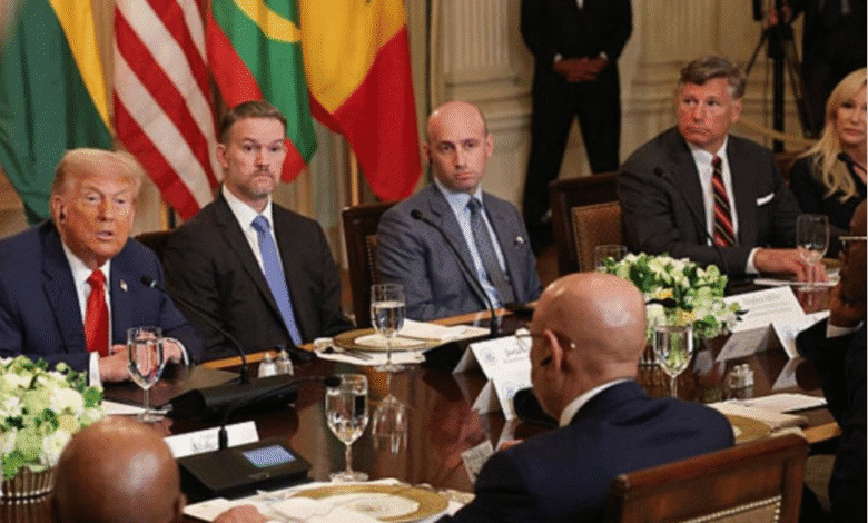 وذكرت صحيفة “نيويورك تايمز” أنه بينما كان ترامب يتناول الغداء في قاعة الطعام الرسمية بالبيت الأبيض مع خمسة من قادة الدول الإفريقية. ومع تنوع اللغات في القاعة، كان الحضور يستخدمون سماعات رأس لسماع الترجمة الفورية.