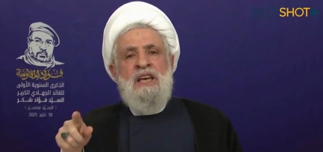 وقال قاسم في خطاب حاد اللهجة: “نحن لا نقبل الابتزاز. يبتزّوننا ويقولون: لن نعطيكم إلا إذا… إلا إذا ماذا؟ إلا إذا سلمتم سلاحكم لإسرائيل! لن نسلّم. وكل من يطالب اليوم بتسليم السلاح، داخلياً أو خارجياً أو عربياً أو دولياً، هو يخدم المشروع الإسرائيلي”.